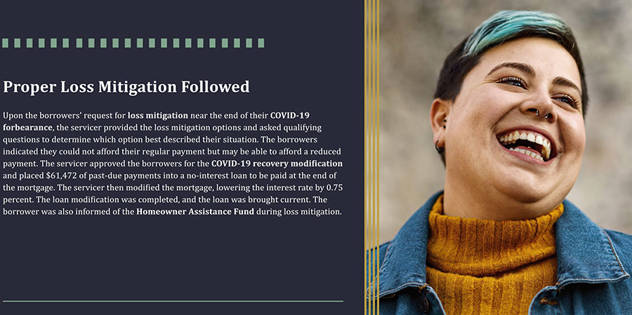 Approximately one-quarter of the borrowers received the correct loss mitigation option, but servicers did not follow COVID-19 loss mitigation guidance to help borrowers with payments that were missed during forbearance.