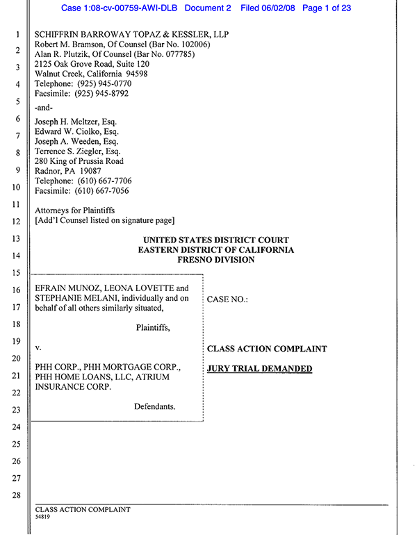 A settlement has been reached in the class action lawsuit pending in the Eastern District of California entitled Munoz, et al. v. PHH Corp., et. al., Case No. 1:08-cv-00759-MMB-BAM (the “Action”). Efrain Munoz, Leona Lovette, Stephanie Melani, John Hoffman, and Daniel Maga, II (collectively “Plaintiffs” or “Class Representatives”) allege that PHH Corp., PHH Mortgage Corp., PHH Home Loans, LCC, and Atrium Insurance Corp. (collectively “Defendants”) violated the law which prohibits the payment of kickbacks in connection with mortgage settlement services. Defendants have denied any wrongdoing. The Court hasn’t decided who is right. Instead, the parties agreed to a settlement to avoid more litigation.